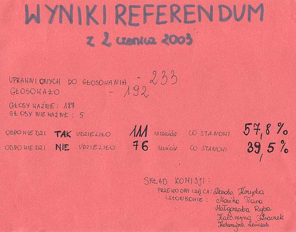2002/2003 ważniejsze wydarzenia z życia szkoły:
